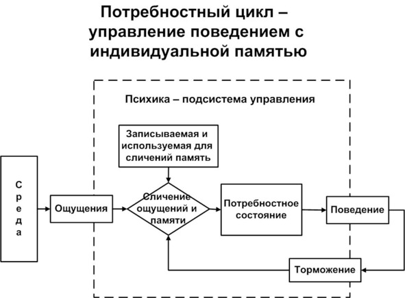 И опыт памяти образует специфические культуры, которые каждый Вид должен передавать потомству, чтобы «Воспроизводить себя». При его анализе полагается использовать понятия управления и информации, чего психологическая наука, пока не делает.