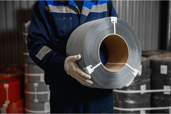 После обвязки груза концы ленты скрепляют скобами или пряжками, а также могут сваривать трением или термосваркой на специальном оборудовании.