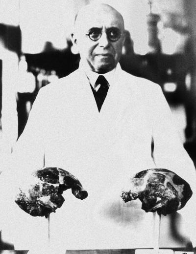 Впрочем, случившаяся трагедия вскоре была забыта, а в декабре 1912 года британский археолог-эволюционист Чарльз Доусон обнаружил неподалеку от населенного пункта Пилтдаун челюстную кость и часть черепа, явно принадлежавшего человеку. Эту находку признал весь научный мир, и череп Пилтдаунского человека стали выставлять в самых известных музеях мира. Ученые заявили, что наконец нашли останки уникального существа – промежуточного эволюционного звена между обезьяной и человеком, и теперь нет сомнений в достоверности дарвиновской теории. В течение полувека «человека Пилтдауна» выдавали за нашего далекого предка и демонстрировали в музеях всего мира.