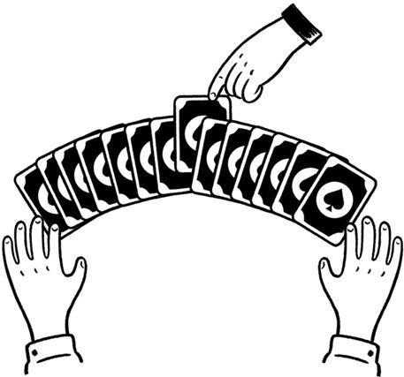 2. Разложи карты вверх рубашкой. Попроси добровольца выбрать одну из них. Потом, отвернувшись, предложи ему показать карту остальным зрителям, чтобы заверить их, что ты не видишь карту.