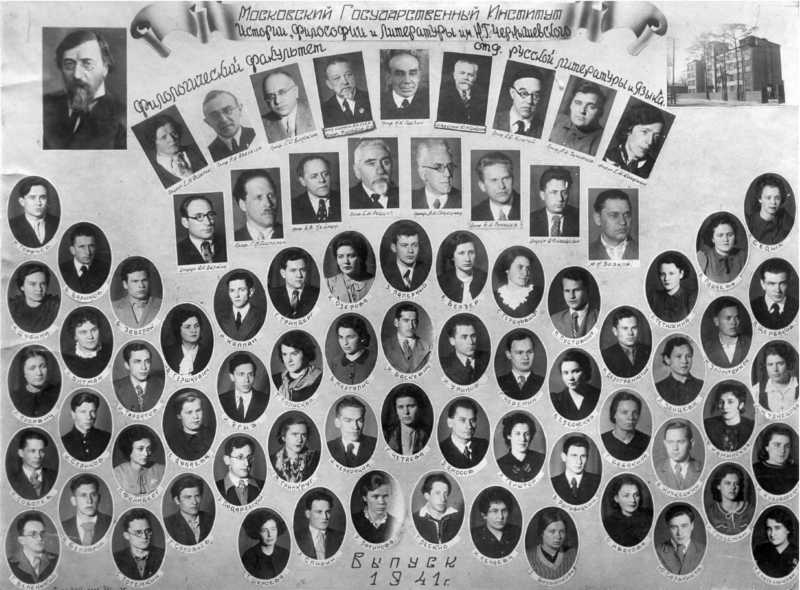 По поводу этого пакта с Гитлером люди по большей части недоумевали и не понимали. Но молча. У нас были свои проблемы, 1937 год, людей арестовывали. А еще надо было готовиться к экзаменам —не только за пятый курс, а за все пять лет. Весь русский язык — современный русский язык, его нам читал профессор Ушаков, автор «Словаря Ушакова», старославянский язык, историю русского литературного языка, потом диалекты. Все это надо было повторить и сдать на экзамене. На столе лежат билеты, там три вопроса из разных сфер. Русскую литературу надо было знать от «Слова о полку Игореве» до, скажем, Константина Симонова. Естественно, Пушкин, Лермонтов, Некрасов — все это надо было держать в голове, а когда отвечаешь — цитаты по памяти. Сейчас, когда я плохо сплю, вспоминаю цитаты. Могу прочесть наизусть сон Татьяны или «Дар напрасный, дар случайный…».