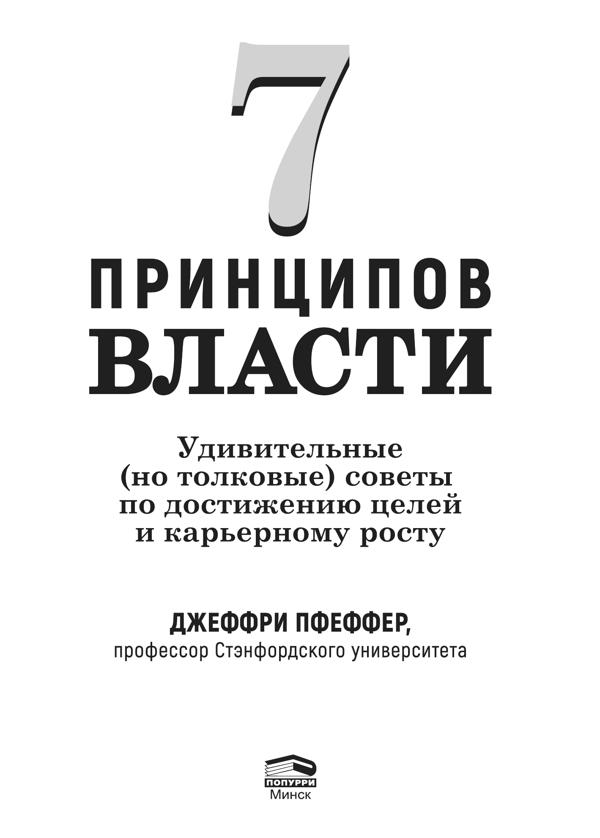 7 принципов власти: Удивительные (но толковые) советы по достижению целей и карьерному росту / Дж. Пфеффер ; пер. с англ. Л. Третьяк. — Минск : Попурри, 2023.