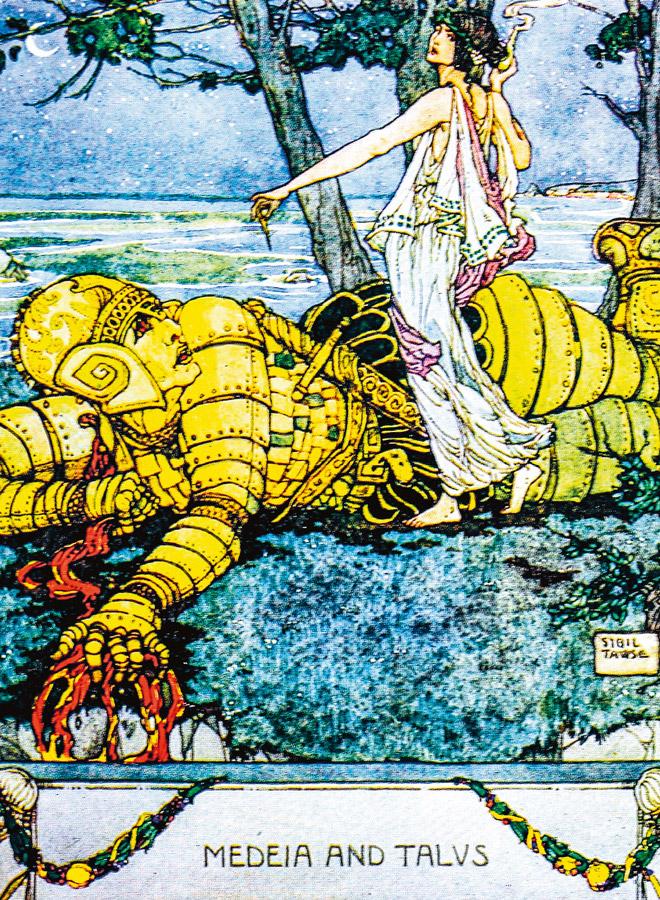 Изображение Талоса из «Историй о богах и героях» Томаса Булфинча (1920), выполненное английской художницей Сибил Таус (1886–1971).