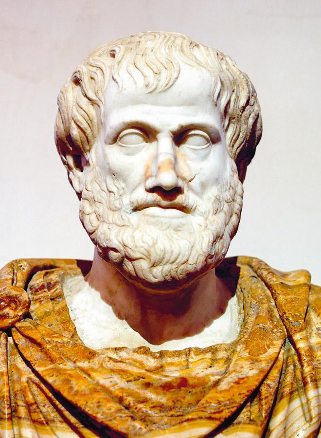 Этот впечатляющий бюст Аристотеля — римская копия бронзового оригинала работы древнегреческого скульптора Лисиппа, жившего в IV в. до н. э.