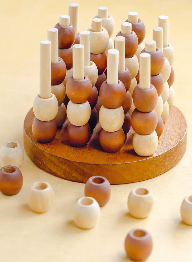 Крестики-нолики можно сделать более сложными для людей и машин с ИИ, расширив стандартное поле 3 × 3 до больших размеров, добавив новые измерения и эффект гравитации, при котором каждый элемент опускается в нижнюю свободную позицию, например как в этой трехмерной версии 4 × 4 × 4.