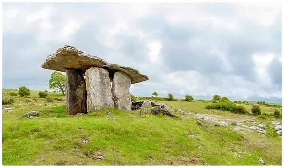 Самым древним и самым фотографируемым мегалитическим памятником в Ирландии является Пулнаброн (Poulnabrone Dolmen). Он располагается на возвышенности в графстве Клэр. При раскопках в 1980-х годах в основании дольмена обнаружили останки как минимум 33 человек, половина из которых принадлежала детям. В результате исследования стало известно, что продолжительность жизни в то время могла достигать 50 лет, именно столько было одному из найденных здесь взрослых. Кости были перемешаны: вероятно, тела в портальной гробнице хоронили не сразу после смерти, а переносили туда позже. Некоторые останки даже указывают на насильственную смерть.