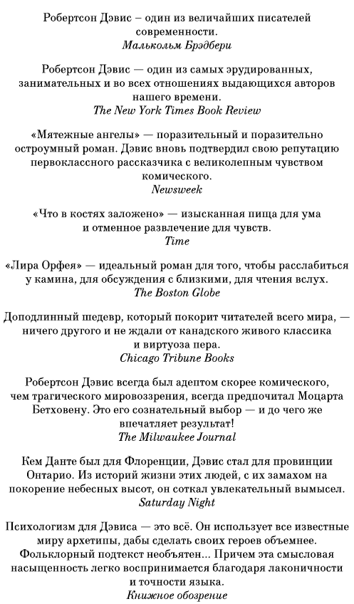 — Фрэнсис Корниш, несомненно, самый крупный... был самым крупным покровителем, ценителем и знатоком искусства, когда-либо жившим в Канаде. Он был невероятно богат и не жалел денег на картины. Они все отойдут Национальной галерее; я знаю, потому что я исполнитель его завещания. Он также был весьма сведущим коллекционером книг, и они отойдут университетской библиотеке. Но он был также и не очень сведущим коллекционером рукописей; он сам не знал своих богатств, его так завораживали картины, что времени на прочее у него уже не оставалось. Рукописи тоже отойдут университетской библиотеке. И одна из них ляжет в фундамент вашей научной карьеры, что и мне, надеюсь, тоже будет полезно. Как только мы заполучим эту рукопись, вы приступите к серьезной работе — работе, которая должна будет поднять вас на несколько ступеней академической лестницы. Эта рукопись ляжет в основу вашей диссертации. И это будет не какой-нибудь плесневелый, засаленный обрывок, с какими приходится иметь дело большинству студентов. Она может стать бомбой, небольшой сенсацией в исследованиях эпохи Возрождения.