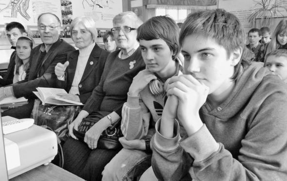 Необычность и еще большую значимость этому уроку памяти придало и присутствие на нем гостей — в этот день в школу приехали ребята и педагоги Троицкой средней школы №9, в которой тоже создан подобный музей. Делегацию из 34 человек возглавлял руководитель Троицкого отделения областной общественной организации «Память сердца», ветеран Великой Отечественной войны Александр Федорович Тагиров. Он внес громадный вклад в то, что возглавляемое им отделение является одним из лучших на Южном Урале по поисковой, краеведческой и музейной работе.