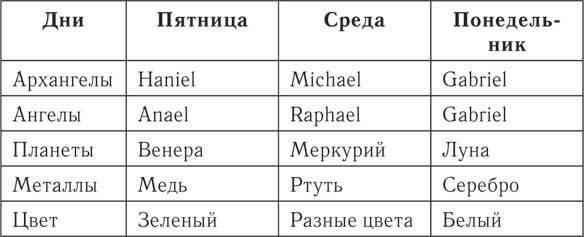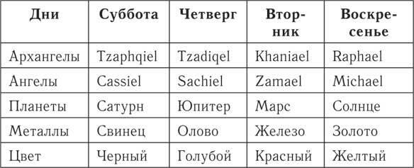 Архангелы и ангелы дней недели, металлов и цветов, соответствующих каждой планете