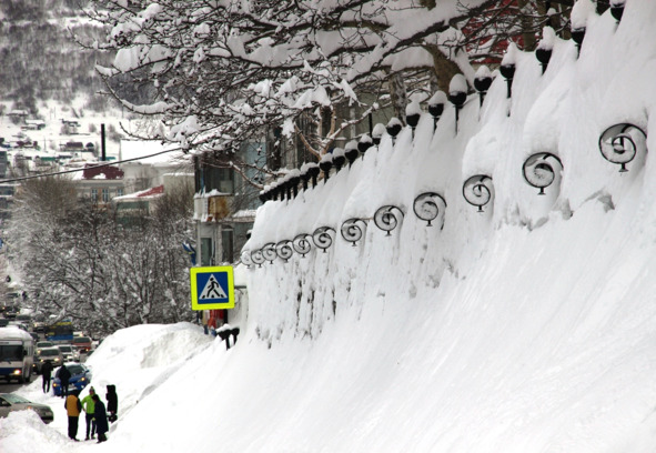 С поездкой на океан мне не везло опять, отправилась в Петропавловск-Камчатский испытать лыжный спуск «Красная сопка». Город завалило снегом. За ночь здесь выпала годовая норма осадков Москвы.
