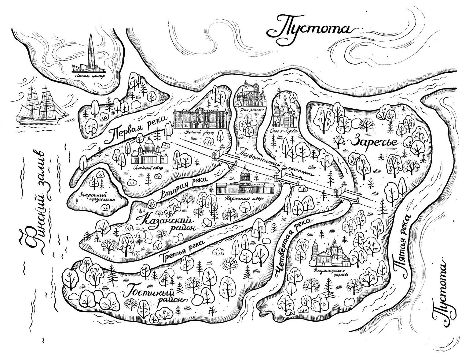 Мы разделились на сословия по силам и способностям нашим. Здесь, в Заречье, мы возделываем землю, пасем скот и кормим все Пятиречье. В Гостином районе за Четвертой рекой поселились те, кто способен выделывать кожу, шить одежду и перековывать металл, спрятанный в недрах лесов. За Третьей рекой раскинулся Казанский район, место интеллектуалов, поэтов, художников. Именно они обучаются письменности, в Заречье так везет не многим. А между Первой и Второй рекой — сердце Пятиречья, Дворцовый район. Место, где концентрируется вся наша жизнь, — Зимний Дворец с Центральной площадью и Главный Собор. А дальше, за реками, лишь Пустота царит над миром, и ни одного человека, ни живого, ни мертвого, нет на тысячи километров.