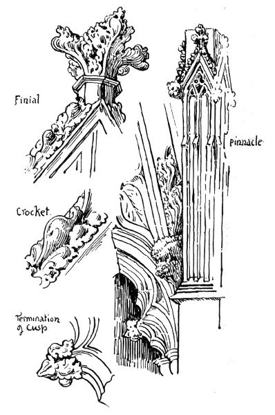 A cathedral represents the collective art, work, and thought of centuries. The names of its builders, its masons, its carvers, its glaziers, are lost; the heads and hands that carried out the work, whose invention and feeling, whose very life have been wrought into the stone and the wood and the glass, have left no other record. An abbot's or a bishop's name may be given as having planned or raised the money for this choir or that porch at different times, but the artists and craftsmen who did the work generally remain unknown. They worked in their craft in harmony with the workers in kindred crafts, and as brother members of their guild, and instead of building up merely personal reputations really evolved collectively the distinctive architectural style and decorative types of their age.