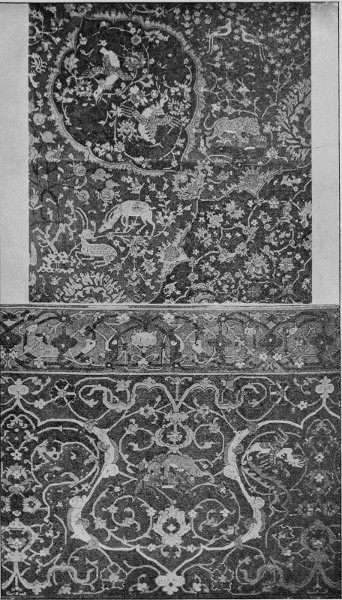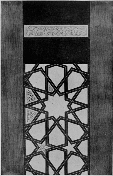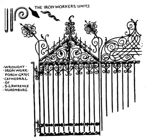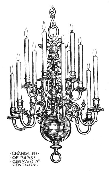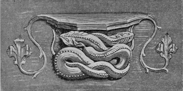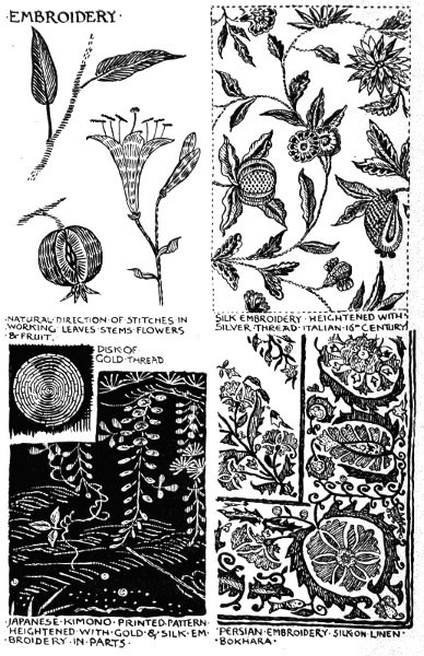 It may be noted that I have freely used both line and tone blocks in the text and throughout the book, although I advocate the use of line drawings only with type in books wherein completeness of organic ornamental character is the object. Such a book as this, however, being rather in the nature of a tool or auxiliary to a designer's workshop, can hardly be regarded from that point of view. The scheme of the work, which necessitates the gathering together of so many and varied illustrations as diverse in scale, subject, and treatment as the historic periods which they represent, would itself preclude a consistent decorative treatment, and it has been found necessary to reproduce many of the illustrations from their original form in large scale drawings on brown paper touched with white, as well as from photographs which necessarily print as tone-blocks.