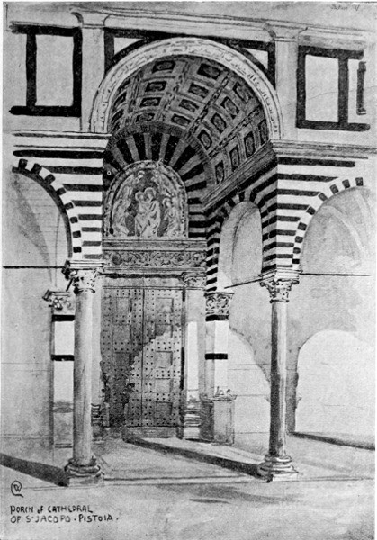 These are a few, a very few, individualities out of the drama of Italian art, briefly sketched, but distinct as they are, they are not detached like isolated statues upon pedestals from the characteristics of their age. They are great because they embody those characteristics; they are like rich jewels strung upon a golden chain—the golden chain of inventive tradition which unites them—which, while leaving each artist free in his own sphere, brings his work into relation and harmony with that of his contemporaries, his predecessors, and his successors. Some may prefer to take the jewels separately and admire them without reference to the chain; but, I think, to fully understand and appreciate the genius of individual artists one must never leave out of account their relation to their time, and its influences, the relation of their particular art to the state of the arts generally; for among these are the factors which have contributed to make them what we find them in their works; just as the colour and relief of a figure or a head depends largely upon its background.