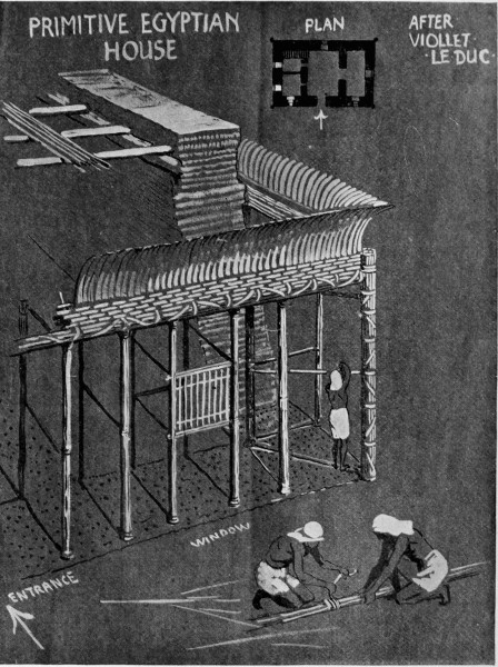 Yes, it is a history of constant adaptation to conditions and united labour and invention from our primitive ancestor, who improved upon the natural shelter of the tree by interlacing its pendent branches with other branches and stakes fixed in the ground; who burned the ends of their timbers, so that as piles they could be driven more easily into the mud to support the platforms of the wattled lake dwellings, when there were no steel axes. From the early colonists of our race, the Aryan wagoners, who perhaps took the idea of the primitive gable and roof timbers from the tilt of the wagon, or the supports of the tent-coverings; from the ingenuity of the Mongolian settlers by the riverside, making the framing of their houses and supporting their roofs by the bamboo, utilizing the hollow canes for the jointing and bracketing of the supports, and terminating the ends ornamentally by inserting grotesquely carved heads. The chain of invention is unbroken up to modern scientific engineering and calculated principles of building construction, which but sums up and systematizes the collective experience of ages.