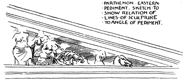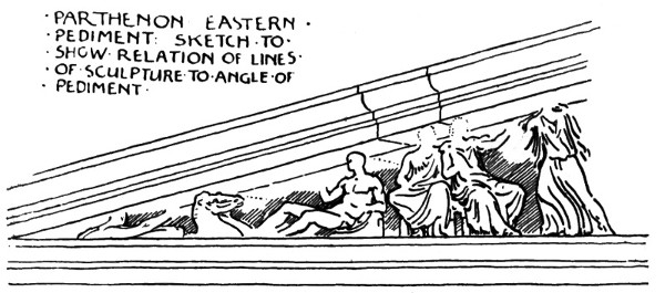 11The Parthenon—Eastern Pediment, sketches showing relation of lines of sculpture to angle of Pediment.