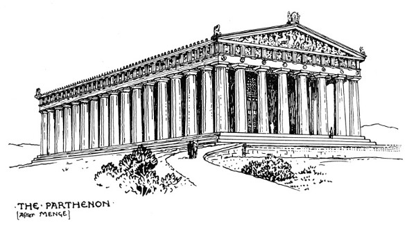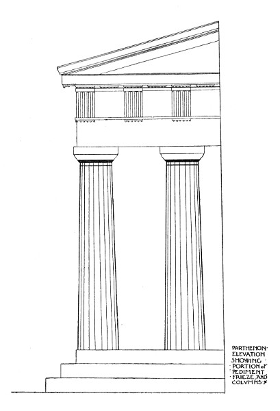 12The Parthenon—Elevation showing portion of Pediment, Frieze and Columns.