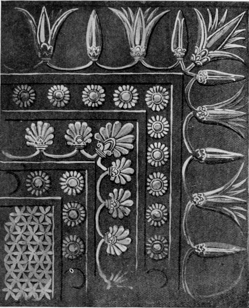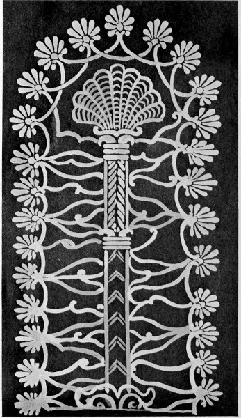 IN my last chapter I compared tradition in art to a golden chain, and the striking individualities which arise from time to time as the jewels upon such a chain. The history of art and the evolution of design may be regarded either from the point of view of the jewels or from the point of view of the ordinary links; and if we wish to take a just and comprehensive view I think we must not only consider the luminous points, but the system—the links—by which they are connected and related. Looking out into the clear night we see a vast mass of brilliant stars of all degrees of magnitude apparently flung into space without order or relation, but the studies of astronomers have revealed that they are the central suns of systems around which revolve planets invisible to us; but these star-suns themselves become lost, and merged in the countless myriads that form the silvery cloud we call the milky way. So it is in the history of art and the evolution of design. At first we are attracted by the brilliant personalities, surrounded by satellites, that seem to sum up in their work whole epochs, and remain typical and central points in the wide spaces of time; but further research reveals their relation to other personalities not so distinct, on whom the full light of popular favour has not flashed, and presently we get beyond personalities altogether, and in the work of remote antiquity see only the results of the labours of generations, purely typical forms of art, the monumental record of races, of nations, of dynasties, the work, not of individual men, but of collective man.