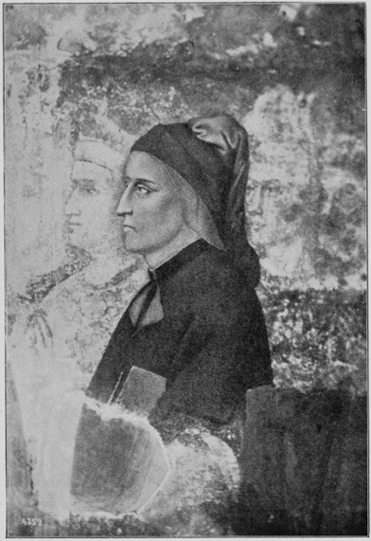 And Giotto has left us an interesting portrait of the poet, on the wall of the Podesta, or council chamber of Florence, his first recorded work. Giotto was, in fact, a fellow pupil with Dante under the same master, Brunetto Latini, since Cimabue gave him all the cultivation of his time in books as well as art. The fame of Giotto as a painter spread all over Italy, and his services were required by the Church, and by rich and great persons.
