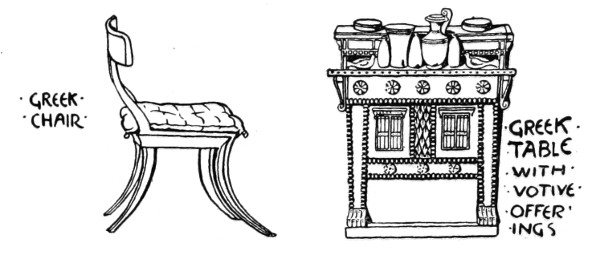 The old stories of the early Greek painters Apelles and Protogenes show, too, at once the tendency towards myth-making, and the old love of talk about art, as well as the old and dearly-clung-to popular theory that the beauty of painting is measured by its illusive power; so that the realistic grapes of Apelles, which only deceived the birds, were supposed to be outdone by the naturalistic curtain of Protogenes, which took in the critics. This tradition seems still to linger in the minds of our scene-painters when they present us with those wonderful (and sometimes fearful) drop curtains of satin, festooned with tassels and cords of undreamed-of sumptuousness and mysterious mechanism.