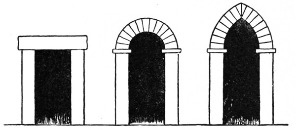 Three typical Constructive Forms in Architecture—Lintel, Round Arch, Pointed Arch.