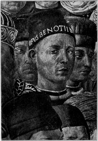 A curious change or blending of other elements and a different feeling in Mantegna's work, softening the somewhat cold and rigid classicism, seems to have been brought about by his association with the Venetian painter Jacopo Bellini, the father of the two greater Bellinis (Giovanni and Gentile), whose daughter Nicolosia he married about this time (1450). This marriage with the daughter of Squarcione's rival, as Bellini was considered, and Mantegna's friendship with him, seems to have offended Squarcione and caused an estrangement, and even the active enmity of his first master, and eventually led to his quitting Padua. He painted some frescoes at Verona, and was invited to Mantua by Ludovico Gonzaga, and finally he entered the service of that prince. He was invited to Rome by Pope Innocent VIII. to paint a chapel in the Belvedere of the Vatican, which was actually destroyed in the last century by Pius VI. to make room for his new museum. This was after the ruthless way of the popes, prodigal of painted walls, as when the beautiful early Renascence frescoes of Melozzo da Forli were removed to make room for Raphael's and Giulio Romano's frescoes in the Stanzi.