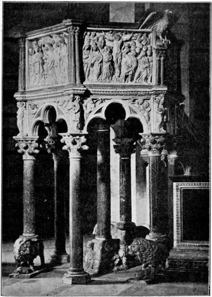 Cimabue and Giotto's contemporary, the sculptor Niccolo Pisano, was another distinguished artist of the early Italian revival. He is said to have been inspired by the study of antique sculpture. A certain sarcophagus (Phædra and Hippolytus) by its life and movement is supposed to have suggested the character which he sought in his work. The dramatic vitality which he infused into his figures was certainly extraordinary, as his famous pulpit at Pisa demonstrates. There was some danger of losing monumental dignity and repose, but it meant a return to nature and life after a long period of restraint and convention which had become dead.