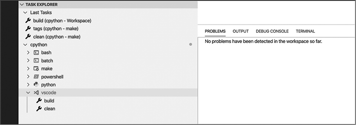 При использовании плагина Task Explorer список настроенных команд будет отображаться в группе vscode: