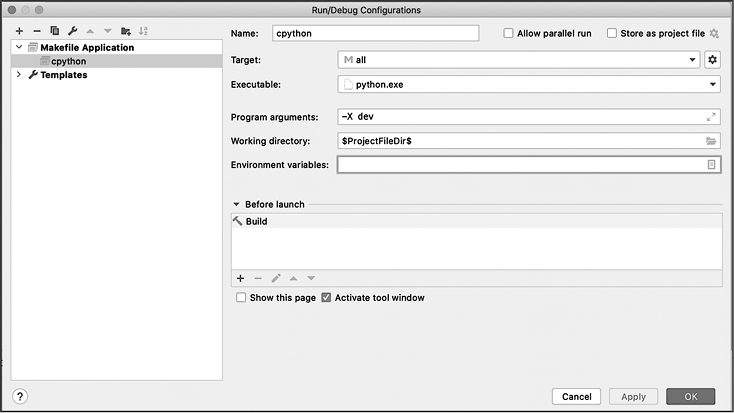Щелкните по кнопке OK, чтобы добавить данную конфигурацию. Этот шаг можно повторить сколько угодно раз для всех make-целей CPython. За полной информацией обращайтесь к разделу «Make-цели CPython» в главе «Компиляция CPython».