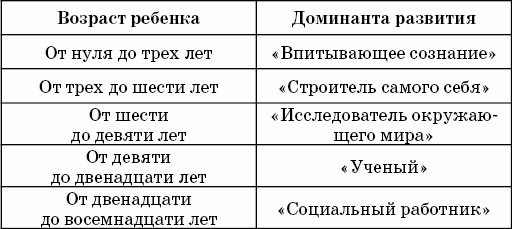 Самое любопытное, что официальная система образования как бы неосознанно учитывала существование этих различных типов психики. Первый период – от рождения до шести лет – открыто признавался уже фактом своего исключения из системы обязательного обучения. Было замечено, что именно к шести годам в ребенке происходят перемены, в силу которых он становится настолько зрелым, чтобы его можно было отдать в школу. Тем самым подтверждалось, что к этому времени ребенок знает уже достаточно много, и это позволяет ему посещать занятия. Действительно, если бы шестилетние дети не могли ориентироваться, не умели бы ходить, не понимали бы слов учителя, то они не были бы в состоянии участвовать в жизни коллектива. Именно в этом и заключалось практическое признание первого периода жизни. Но воспитателям не приходило в голову, что если ребенок способен ходить в школу, ориентироваться, понимать доносимые до него мысли, то есть делать то, что при рождении не умел, значит, он сам себя развил умственно.