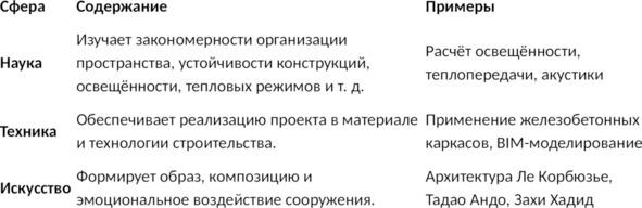 Таким образом, архитектор должен мыслить одновременно научно, технически и художественно, соединяя расчёт, технологию и эстетику в едином проектном решении.