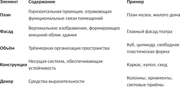 Архитектурная форма включает несколько взаимосвязанных компонентов: