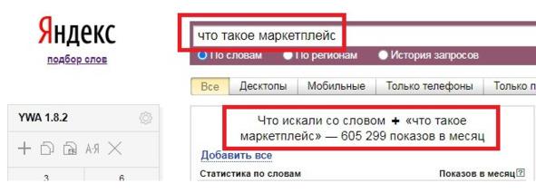 Спрос на маркетплейсы уже составляет более 600 000 показов в месяц и только растет — и это только среди тех, кто еще не знает, что такое маркетплейсы.