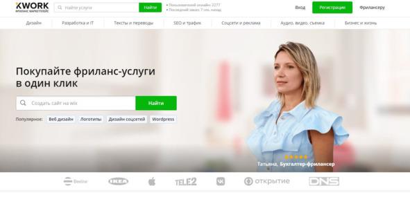 И еще один пример — KWORK — биржа, где представлены услуги дизайнеров, копирайтеров и т. п. Но глобально всех этих продавцов услуг объединяет фриланс.