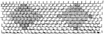 The best results of this general awakening will probably be in the South. Certainly no conditions could be more favourable than those existing in the Cumberland Mountains, where wool and cotton grown upon the rough farms are habitually spun and woven and dyed in the home cabin. The dyes are often made from walnut bark, pokeberry, and certain nuts and roots which have been found capable of “fast” stain and are easily procured. Unfortunately, the facility with which aniline dyes can be used is not unknown. The “linsey woolsey,” which is not only a common manufacture in the farmhouses, but the common wear of both men and women, is an interesting and good manufacture, capable of much wider use than it enjoys at present.