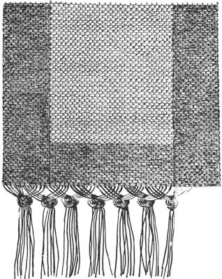 Among these domestic products we shall find the laces of all countries, Ireland, Belgium, France, Italy, Sweden and Russia contributing this beautiful manufacture, from finest to coarsest quality. It is as common a process as knitting in the homes of many countries, and the fact of it being successfully taught in the Indian cabins of the far West proves that it is not a difficult accomplishment. Embroideries, in all countries but our own, are common and profitable home productions; and when we come to hand-weavings the variety is infinite. In practical England, the value of hand-weavings in linens has led to the introduction of small “parlour looms” from Sweden; and damasks of special designs are woven for special customers who appreciate their charm and worth.