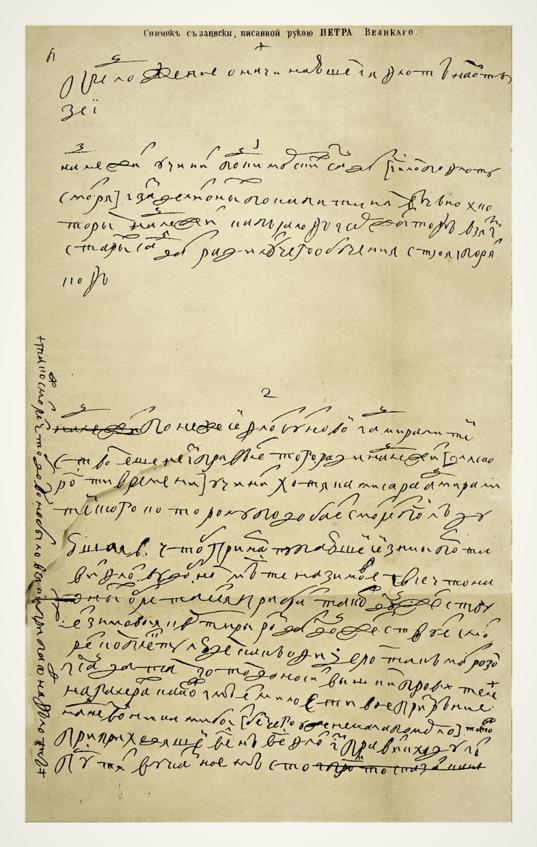 Здесь хочу показать читатель подлинный документ или записка Петра от 1707 года про флот на Балтике «Определение о начинающем флоте на Ост-зее» вот небольшая цитата, кто желает может попробовать прочесть по руке Петра: «1. Надлежит учинить полки морских солдат и разделить оных по капитанам, которым надлежит капралоф и сержантоф взять из старых солдат ради лутчего обучения строя и порядкоф. 2. Понеже сей флот суть новый и адмиралтейством его сие изправлен того ради надлежит, для скорости времени учинить хотя камисара адмиралитейскаго, котором подобает смотреть последующая: чтоб при наступлении сей зимы поставить флот вудобном месте на зимовье и всег что на оных обретается прибрать.