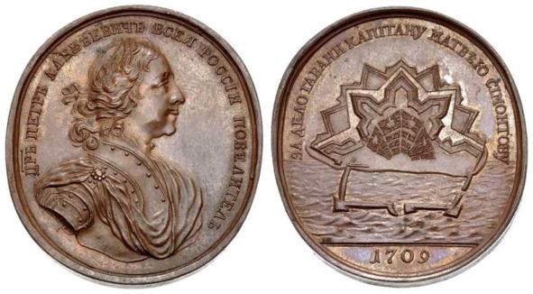 Летом 1713 года на рейде Гельсингфорса осаждаемого русскими войсками пришла шведская эскадра из 11 кораблей. Царь находился на корабле «Полтава» под управлением капитана Хендрика Гельма. Новый 54 пушечный трёхматчевый линкор сошёл со стапеля Санкт-Петербургского адмиралтейства. Строил его Федосей Скляев при непосредственном участии Петра.