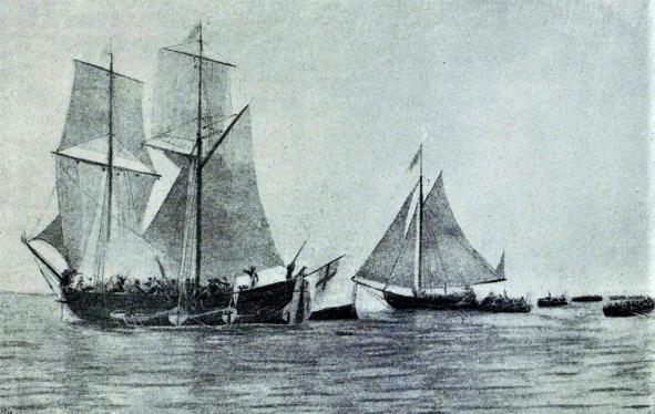 В ходе осадных работ с берега был замечен шведский транспортный корабль. По инициативе сержанта Преображенского полка Михаила Щепотьева было решено захватить его, используя 10 вёсельные лодки. Ночью в октябре 1706 года 50 преображенца на пяти лодках вышли в залив.