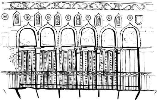 Украшался рельефами, вытянутыми окнами, наращивал этажи и престижные piano nobile – наиболее роскошные уровни с залами. Появились три упругие арки, выходящие к воде, острые готические завершения, капители и медальоны.