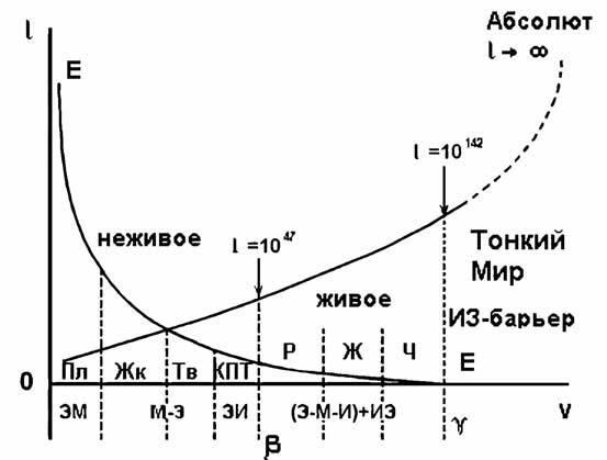 В 1996 году вышла статья профессора В. Н. Волченко «Неизбежность, реальность и постижимость Тонкого мира»[23], а позже и другие его работы[24][25], в которых он вводит понятия «энергетичности» и «информативности», а также «витальности» – их отношения, обеспечивающего переход от грубоматериальных структур к тонкоматериальным (рисунок 1.3).