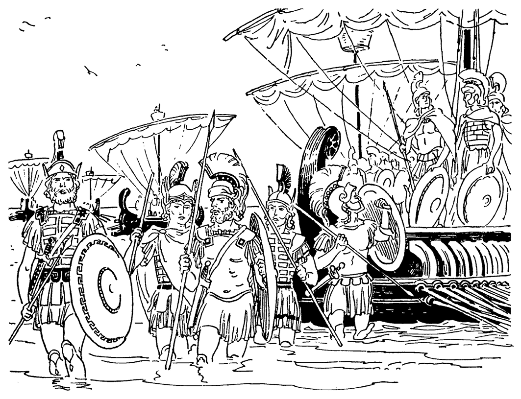 Смутно зеленеющий берег Азии медленно приближался, волнуя неизвестностью. За бортом плескалась беспокойная сверкающая вода. И чем ближе подступал этот берег, тем задумчивее становились военачальники царя. Они идут со своим очень небольшим войском воевать с персами. Что такое их тридцать две тысячи пеших и пять тысяч конных воинов по сравнению с неисчислимыми полчищами персидского царя? Когда Ксеркс в былые времена проходил через Македонию, его войска выпивали досуха целые реки!