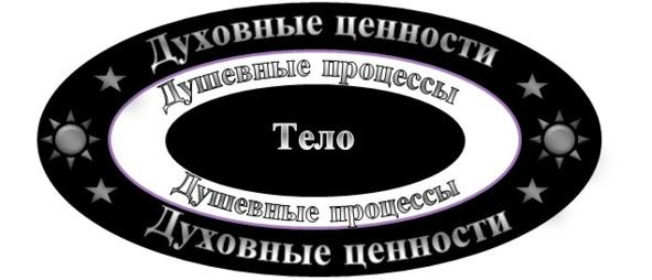 Мы видим, что согласно этой теории человеческая индивидуальность состоит из духовных ценностей, психических процессов и тела. рис.1