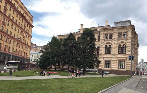 Итак, мы выходим из метро «Лубянка» к началу улицы Мясницкая и оглядываемся на Лубянскую площадь. Надо сказать, что саму площадь точно можно считать жертвой репрессий, потому что исторических зданий здесь почти не осталось и представить, как выглядела эта площадь за стеной Китай-города хотя бы в XVII веке, можно только по архивным документам. Что касается названия площади, то версий несколько, но все они не звучат достаточно убедительно. Место торговли лубом — волокнистой частью древесины между корой и массивом, основным сырьем для лаптей, коробов и сундуков. Похоже на правду, тем более что историческая Лубянка — это очень маленькое пространство, а то, что мы видим сегодня, результат трех расширений: в конце XIX, в 30-х и в 50-х годах ХХ века.