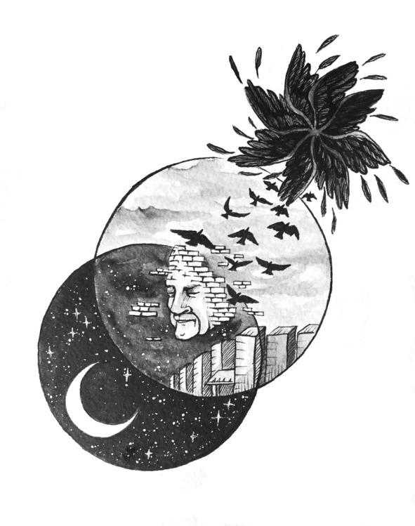 Вдруг сквозь перо вороны словно прошли волны ветра, не затронувшие остальной мир. Перо начало расти прямо на глазах, изгибаясь, ломаясь на части. Ставшие полностью черными крупицы птичьего оперенья быстро заволокли собой всю Вселенную, и настала ночь. Впрочем, видение растаяло столь же внезапно, как появилось. Мальчик не успел даже испугаться как следует, а вокруг уже снова был день. Вот и что тут будешь думать?.. Самое главное, что на этом странные события не закончились! Не успел пацан дойти до корпуса «очага», как из-под распростертого кленового листа сама собой выехала механическая заводная машинка из металла. Врезавшись в Сашину туфлю, она объехала его и погнала прочь.