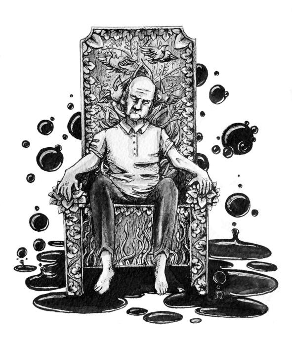 Оторвавшись от окна, Дозин захватил наполовину опустошенный стакан и проследовал в свою комнату, или, как он иногда называл ее, «тронный зал». Там он сел в специально изготовленное по его заказу кресло, почти что трон — дубовое, массивное, с прямой крепкой спинкой и резным детальным орнаментом, покрытым разноцветным лаком. Вспомнилось, как лет десять назад это кресло, тихонько матерясь, шутя и потея, с немалым трудом внесли в комнату и поставили у стены двое грузчиков. Так оно простояло до второго года третьего десятилетия двадцать первого века, и стояло до сих пор — оригинальный влетевший в копеечку предмет быта, всегда обращавший на себя внимание тех немногих, кто время от времени оказывался в квартире Дозина. Казалось, что широкие подлокотники вечно обдувает ветром: резец мастера изготовил по макету Александра Петровича согнутые дыханием Стрибога цветы-розетки, летящих птиц, динамичные волнистые узоры и кленовые листья, угоняемые в Вечность воздушными завихрениями урагана. Точно так сейчас уносило в Вечность и самого Дозина. На спинке, перпендикулярной полу, в глаза бросались языки отчетливо выделявшегося багрового пламени. Среди них мелькали ветки деревьев, ночные мотыльки, Луна и звезды. Ножки кресла, словно вросшие, прочно стояли на полу, символизируя землю, и по ним среди драгоценных и полудрагоценных камней спиралевидно поднимались зеленые гады и черви. Глаза у змей были опаловыми. На сиденье «трона» расплескалось голубое озеро с осокой, камышами, лотосами и одиноким белым лебедем.
