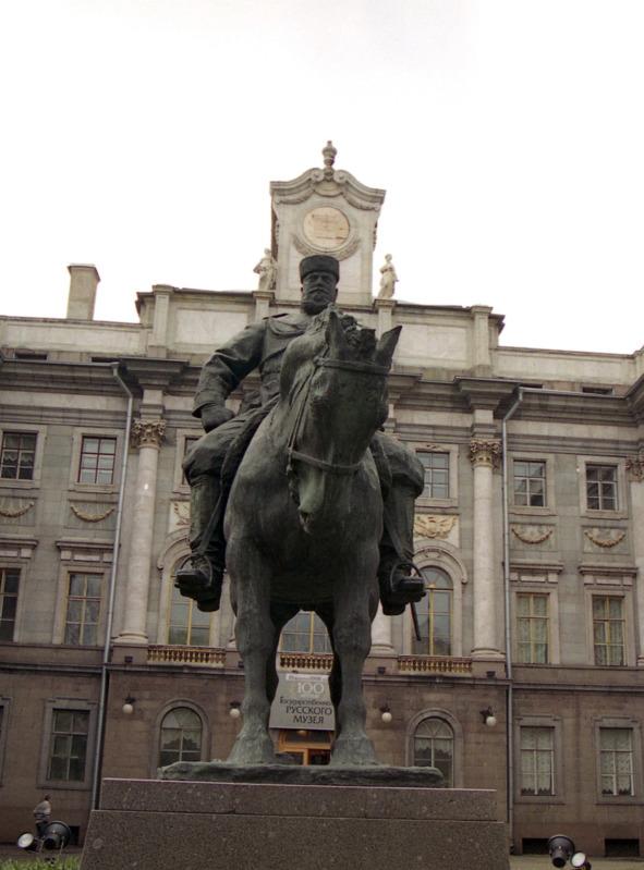 Всё это теперь глубоко в прошлом. Даже броневик, с которого Ленин охмурял собравшуюся на вокзале толпу, куда-то канул с места своей «вечной стоянки» во дворе Музея революции. Теперь собрание революционных раритетов, располагавшееся в великолепном, выстроенном для кого-то из великих князей, Мраморном дворце, уступило место более вечным ценностям из Русского музея. А бронированный уродец, предназначенный в основном для устрашения демонстрантов, уступил постамент монументальному Александру III — царю-богатырю. Его карикатурно-коренастая конная статуя когда-то стояла на площади перед Московским вокзалом, а после, всё советское время, прозябала на задворках Русского музея. На старое место возвратить сей позеленевший монумент уже не смогли — площадь ныне занята памятником защитникам Ленинграда. А этот блокадный период советской истории — единственная эпоха, которая здесь не подвергается ревизии и переоценке. Вот и решили поставить царя на место броневика.