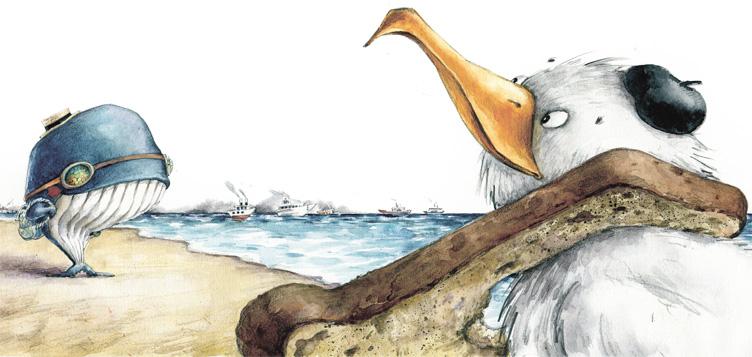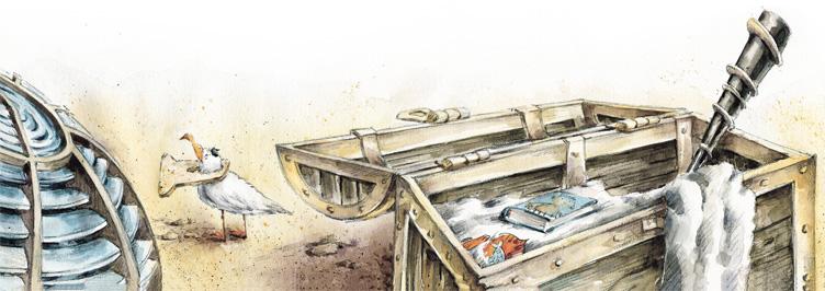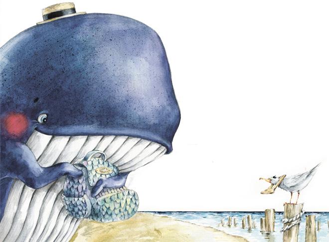 Китесса засуетилась, сняла с плавников рюкзак и вытряхнула его содержимое на песок. Вам интересно, что бывает в рюкзаках у китов? Слушайте! Банка шпрот, влажные салфетки «Русалочка», пудреница с перламутровой пудрой, носовой платок из куска паруса, фонарик от маяка, маникюрные ножнички из крабовой клешни, ракушка-плеер с наушниками, пузырёк валерьянки, книжка «Техника закаливания», губная гармошка, старинный сундук (который в плавниках китессы выглядел как шкатулка) и пиратская подзорная труба.