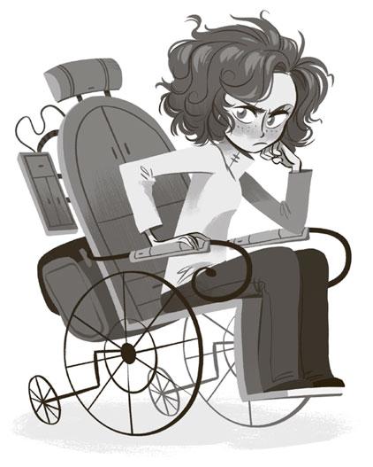 А ещё яркую, как огонёк, малышку Ридли Ларсен, настоящего учёного со спутанными рыжими волосами, которые придают ей очень уж суровый и серьёзный вид. Вы не успеете сказать заклинание «Абракадабра!», как она уже превратит один предмет в другой и обратно. Свою записную книжку она прячет в специальном отделении в подлокотнике инвалидной коляски, чтобы можно было в любой момент решить хитроумные головоломки и взломать секретные коды вместе с друзьями. Если вы будете доброжелательны с ней, она обязательно поделится своими секретами и с вами. (Если уже не поделилась.)