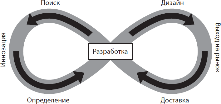 Рис. В.1. Разработка решений, которые оценят клиенты, – это непрерывное движение между инновацией и выходом на рынок